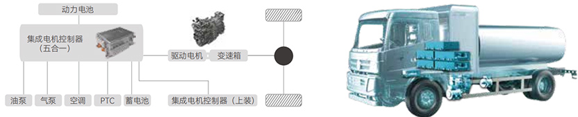 电机控制器集成了多项功能,包括MCU、DCDC转换器、双DCAC逆变器和PDU(功率分配单元),能够为车辆上装提供高达150kw的持续功率输出,满足高功率应用需求,增强了车辆的整体性能和适用性。